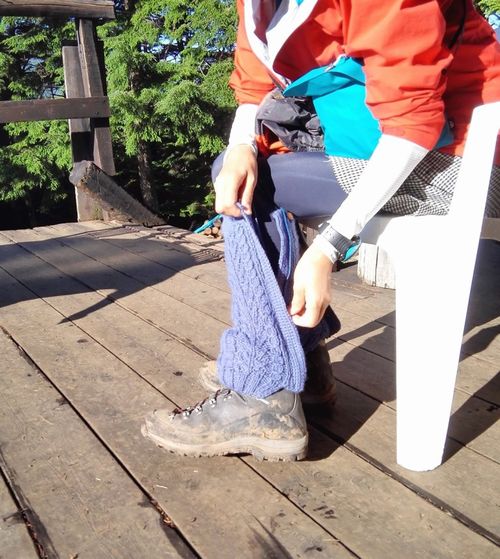 もともと、山ガールでもある手編み作家の横山さんが、山歩きで使うレッグウォーマーが
